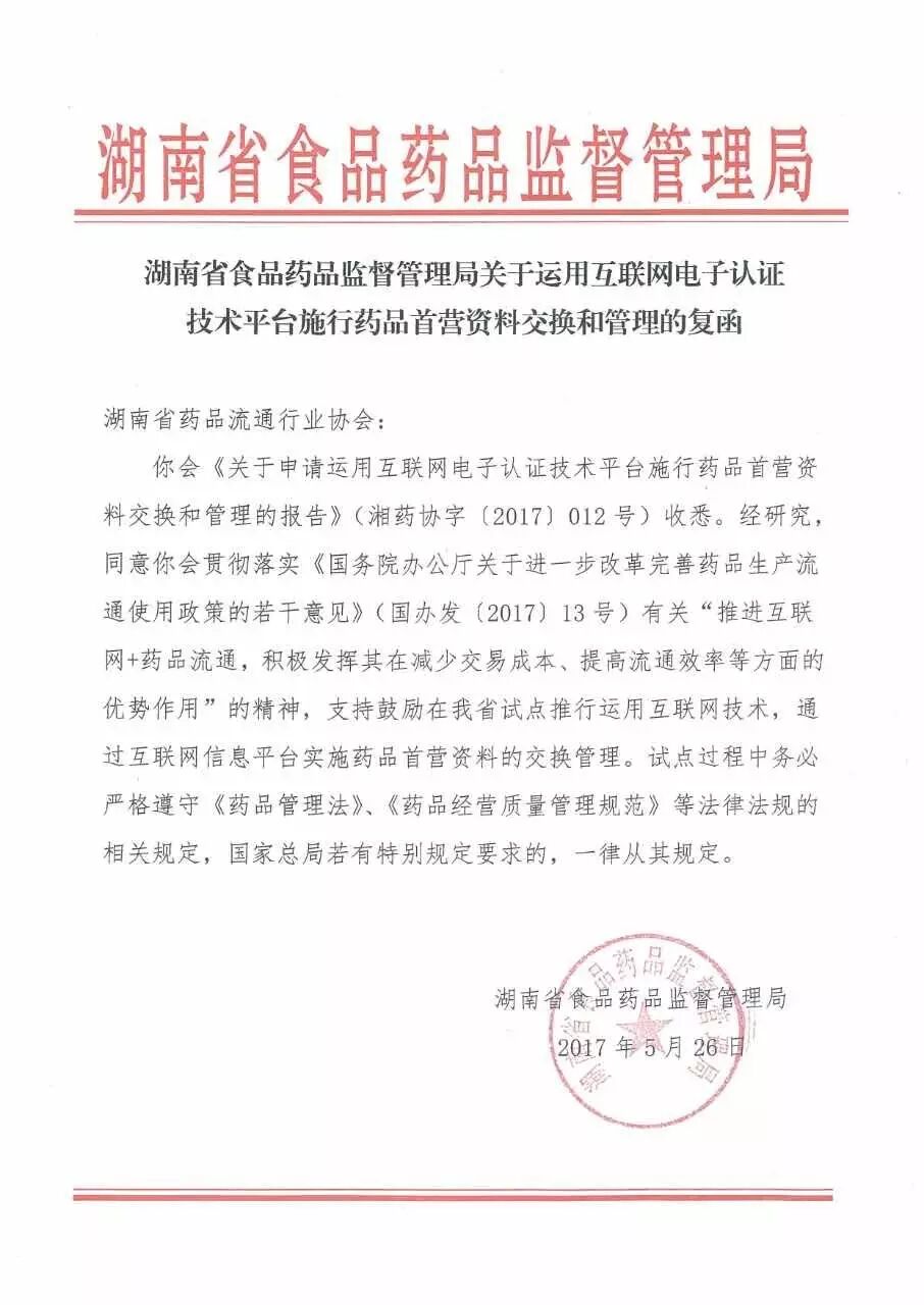 湖南省正式批准应用互联网信息平台(www.syzljh.cn)试行药品首营资料电子化交换!