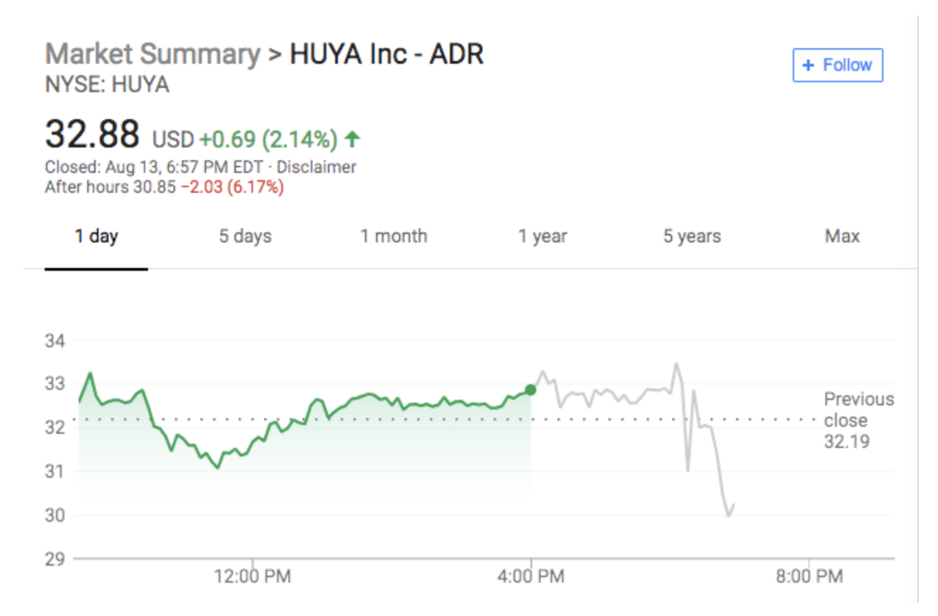 8月14日,虎牙直播发布了今年第二季度财报后股价盘后跌超6%。