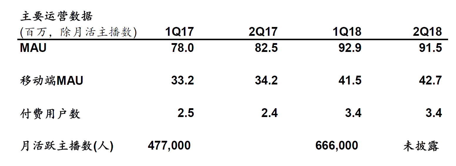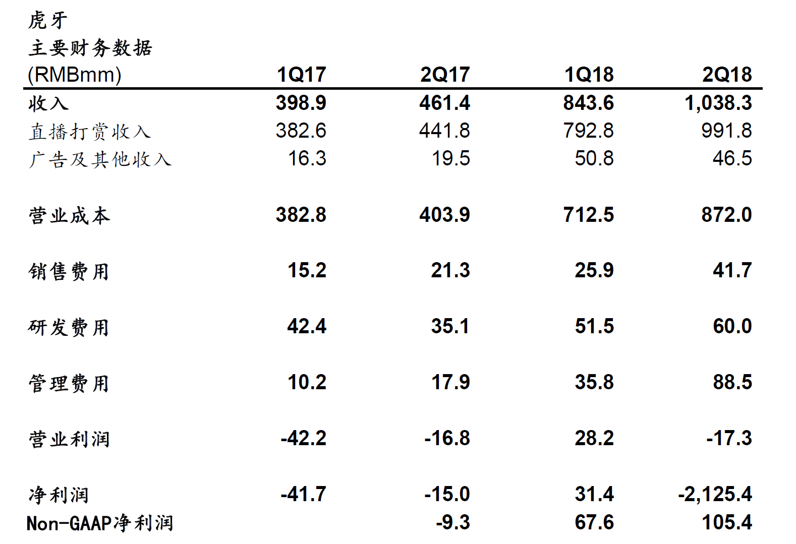当然财报中也不全是坏消息,虎牙在二季度直播收入为人民币9.918亿元(1.499亿美元),相比2017年同期的人民币4.418亿元增长124.5%,主要增长原因是每个付费用户的支出增加。另外,2018年第二季度毛利润为人民币1.664亿元(2510万美元),相比2017年同期的人民币5750万元增长189.5%。